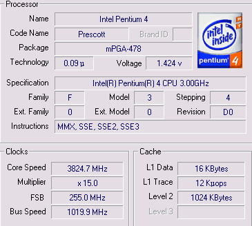 Результат разгона Intel Pentium 4 (Prescott)