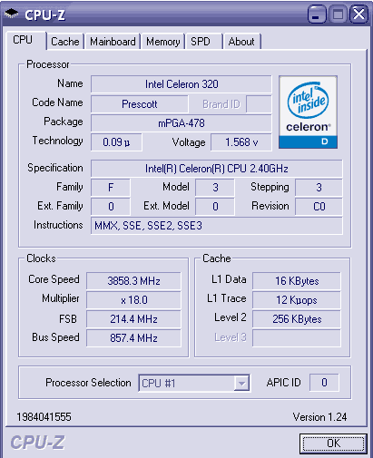 Результат разгона Intel Celeron D (Prescott-256)