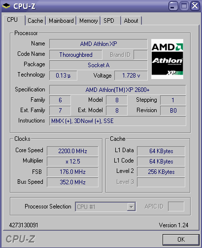 Результат разгона AMD Athlon XP (Thoroughbred)