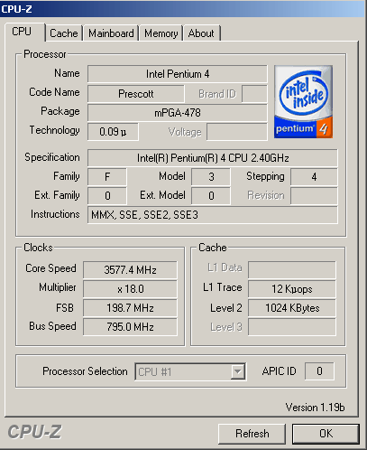 | Процессор (ядро) | Intel Pentium 4 (Prescott) |