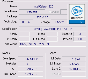 | Процессор (ядро) | Intel Celeron D (Prescott-256) |