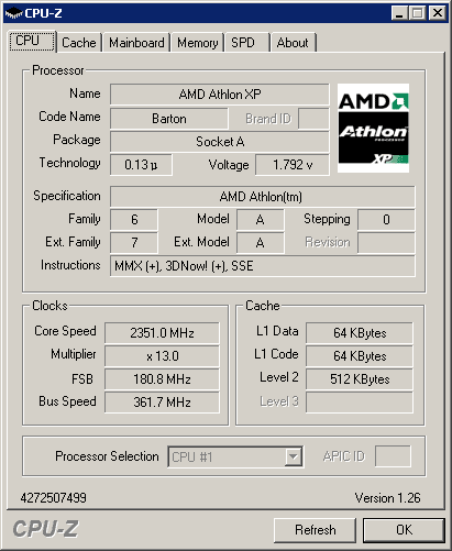 | Процессор (ядро) | AMD Athlon XP (Barton) |