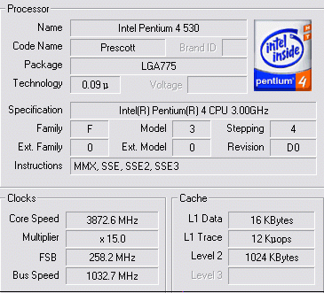 Результат разгона Intel Pentium 4 (Prescott)