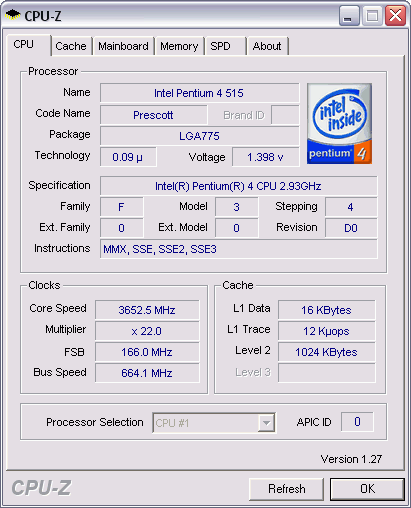 | Процессор (ядро) | Intel Pentium 4 (Prescott) |
