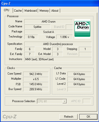 | Процессор (ядро) | AMD Duron (Spitfire) |