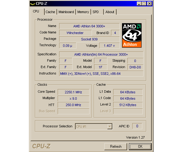 | Процессор (ядро) | AMD Athlon 64 (Winchester) |