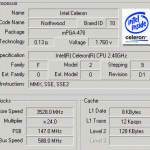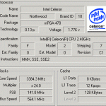 Еще один собрат моего предыдущего рекорда на Celeron. Греются, правда, неслабо. Маркировка процессора у штрих-кода отличается от предыдущего рекордсмена на 5 единиц - 00022 и 00027 соответственно. А вообще у меня начинает рождаться теория, что чем меньше это число, тем лучше гонится процессор. Вот сейчас гляну два С4-2.4...