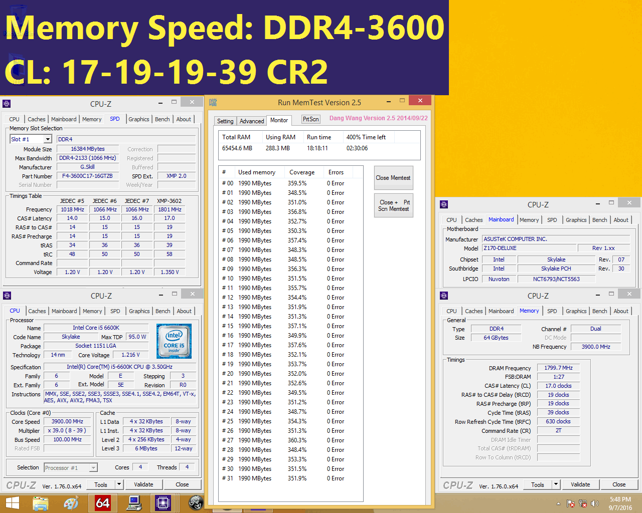 Работа комплекта в режиме DDR4-3600 тестировалась вместе с процессором Intel Core i5-6600K поколения Skylake и материнской платы Asus Z170-Deluxe. Поддержка профилей XMP 2.0 обеспечивает автоматическую установку необходимого режима работы, без необходимости ручной настройки параметров в BIOS/UEFI. Продажи нового 64-Гбайт комплекта модулей Trident Z DDR4-3600 начнутся в декабре, правда, о его стоимости пока что информации нет.