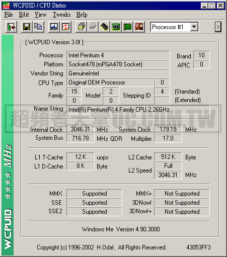Интересно, что в нашей лаборатории уже побывал процессор Pentium 4 2.4 ГГц, рассчитанный на частоту шины 533 МГц, и его результат составил "всего" 2915 МГц. Интересно, почему образец процессора, доставшийся тайваньцам, показал более высокий результат? Скорее всего, они оказались просто более везучими... :)