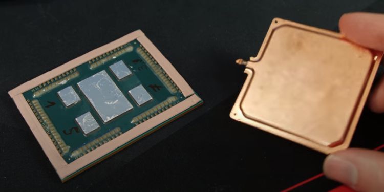 Чтобы исключить перекосы при монтаже, Роман Хартунг (Roman Hartung) использовал термопрокладки толщиной 1 мм, которые нанёс на свободную поверхность подложки процессора по периметру. Две широкие полоски, соседствующие с кристаллами вычислительных ядер, он в окончательном варианте удалил.