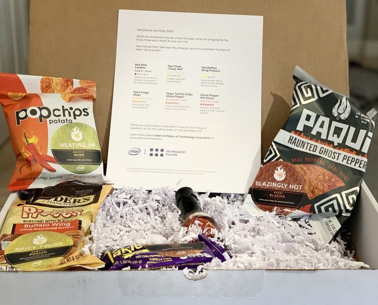 Как мы уже сообщали, в этом году организаторы Hot Chips придумали специально для Intel уровень спонсорской поддержки мероприятия, который ранее никогда не использовался – его символом стал металл родий, который в иерархии спонсоров этой конференции расположился выше платины. Само мероприятие прошло в виртуальной форме, поэтому побаловать гостей фуршетом Intel не имела возможности, но кое-кто из зарегистрированных участников получил коробки с острыми закусками, как можно судить по фотографиям очевидцев.