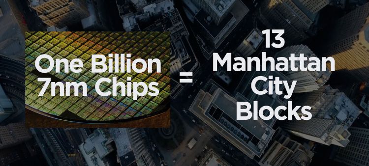 TSMC со страниц блога поясняет, что в июле этого года произвела миллиардный 7-нм чип, а если собрать весь тираж 7-нм изделий, то можно покрыть площадь, эквивалентную 13 кварталам Манхэттена. Сложно сказать, насколько велика доля жителей Нью-Йорка в аудитории блога TSMC, но подобное сравнение призвано впечатлить обывателя. TSMC также снабжает 7-нм компонентами разработчиков систем автопилота для транспорта. Это значит, что эти 7-нм изделия отвечают повышенным требованиям к надёжности электроники, работающей в сложных условиях с ответственной информацией.