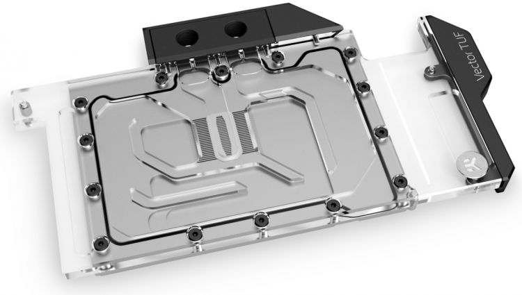 Уходящая неделя была ознаменована выходом водоблоков для видеокарт GeForce RTX 3080 и GeForce RTX 3090 марки Asus серии TUF. Их размеры «в плане» не превышают 148 х 267 мм, при этом все ключевые компоненты печатной платы получают адекватное охлаждение.