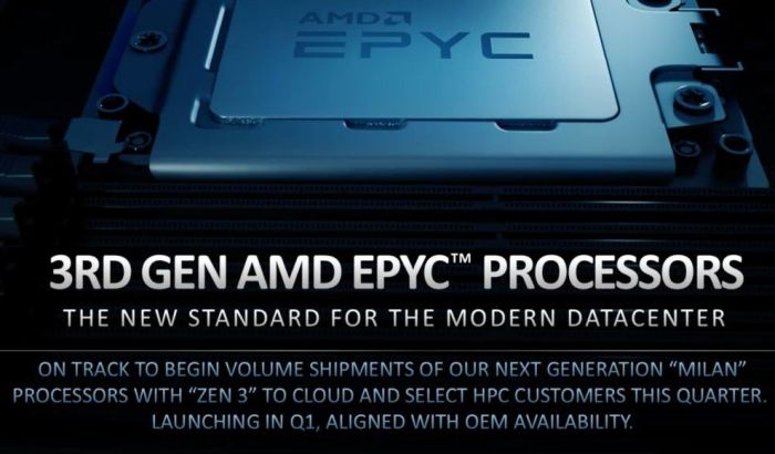 Издание HardwareLUXX.de поделилось выдержками из презентации AMD, которая подготовлена к предстоящему анонсу 7-нм процессоров EPYC с архитектурой Zen 3, носящих условное обозначение Milan. Компания напомнила, что поставки этих процессоров для нужд провайдеров облачных услуг и организаций, строящих суперкомпьютеры, начнёт ещё в этом году, но на широком рынке они появятся только в следующем квартале.