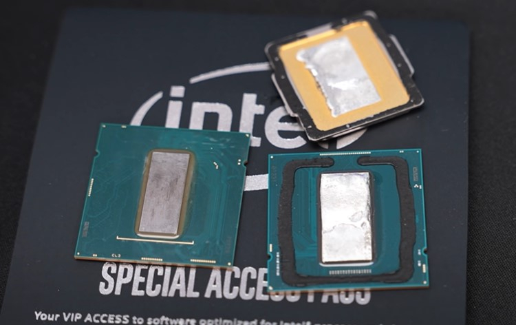 Вскрытие процессора Intel Core i9-11900K силами известного немецкого энтузиаста уже показало, что на кристалл новинки наносится термоинтерфейс, напоминающий припой. Его замена на так называемый «жидкий металл», однако, позволила снизить температуру процессора под нагрузкой на 12 градусов, что заставило серьёзно задуматься об эффективности штатного термоинтерфейса.