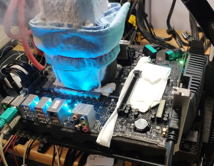 На указанной частоте процессор сохранил активность только трёх ядер и трёх потоков, использовалась материнская плата ASUS ROG Maximus XIII Apex.