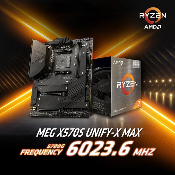 Ограниченная активность энтузиастов в сфере разгона новейших гибридных процессоров AMD Cezanne была вызвана тем, что они формально ещё не поступили в продажу, а производитель хоть и делал это не очень навязчиво, но ограничивал распространение информации соответствующего характера. Зато с началом продаж процессоров семейства Ryzen 5000G оживились и производители материнских плат, которые спонсировали оверклокеров. Компания MSI, например, рассказала о достижении процессором Ryzen 7 5700G частоты 6023,6 МГц при активности всех восьми ядер, хотя на страницах Twitter компания упоминает о единственном ядре.