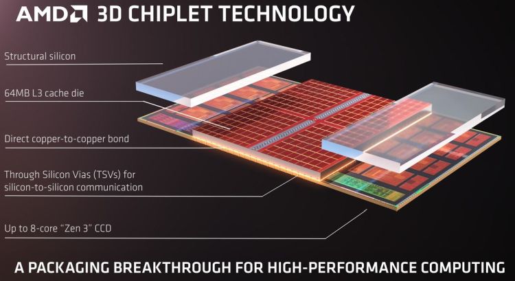 Зато AMD готова начать оснащать свои наиболее дорогие продукты чиплетами с трёхмерной пространственной компоновкой в конце этого года. Идёт ли речь о потребительских процессорах Ryzen с памятью типа 3D V-Cache, которая демонстрировалась этим летом, из контекста понять сложно, но упоминавшиеся на Computex 2021 сроки внедрения этого новшества очевидным образом перекликаются с новым прогнозом. Возможно, формальный дебют обновлённых процессоров Ryzen с дополнительной кеш-памятью состоится в начале следующего года.