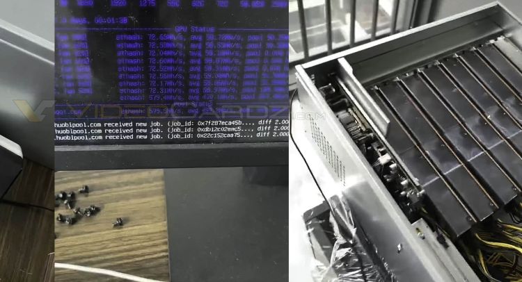 Впрочем, какие-то безымянные ускорители автором фотографий демонстрируются и в составе работающей майнинговой фермы, поэтому спешить с упрёками в фальсификации данных не следует.