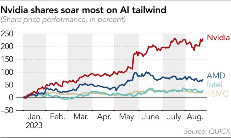 К слову, её главный производственный партнёр в лице TSMC оказывается не в столь выигрышном положении. По оценкам аналитиков Morgan Stanley, в этом году лишь 6% выручки тайваньского контрактного производителя чипов будет определяться поставками компонентов для систем искусственного интеллекта. Пока TSMC не может выпускать чипы для NVIDIA и упаковывать их в таких количествах, чтобы в полной мере удовлетворять весь спрос, но обещает к концу следующего года удвоить профильные производственные мощности. В случае с TSMC всплеск интереса клиентов к теме искусственного интеллекта также пока не в состоянии компенсировать спада на рынке потребительской электроники, который наблюдается после завершения пандемии.