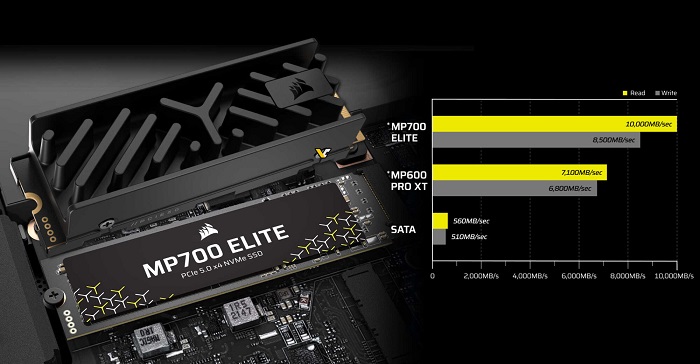 Компания Corsair анонсировала твердотельные накопители MP700 Elite. Новинки используют интерфейс PCIe 5.0 и форм-фактор M.2 2280. Заявленная скорость последовательного чтения достигает 10 000 Мбайт/с, записи — 8500 Мбайт/с.