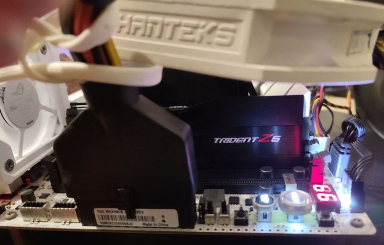 Центральный процессор Intel Core Ultra 9 285K охлаждался водоблоком, а для обдува единственного модуля памяти G.Skill Trident Z5 использовался крупный вентилятор. Материнская плата Asus ROG Maximus Z890 Apex легла в основу тестового стенда.