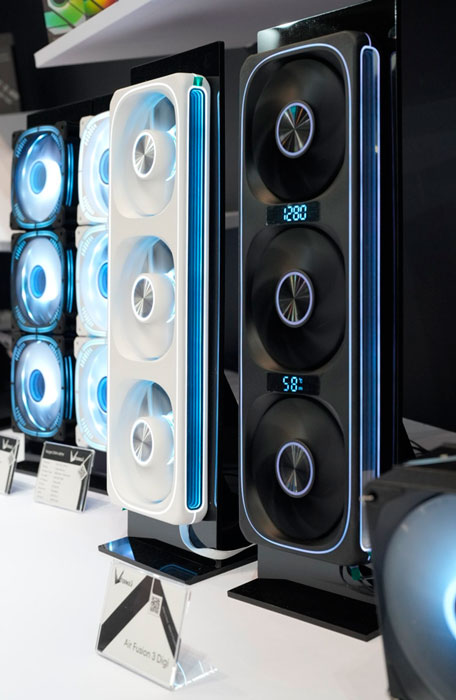 Выпускает Formula V Line и системы охлаждения. В частности, на выставке демонстрируется модель Air Fusion 3 Digi с тройным вентилятором, индикаторами скорости и температуры.
