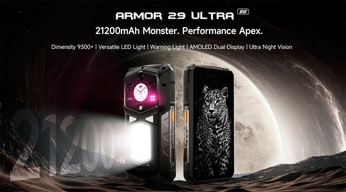 Среди камер представлены основная с 1-дюймовым сенсором Sony IMX989, камера ночного видения с разрешением 64 Мп и сверхширокоугольный объектив 50 Мп. Доступен объём хранилища 1 ТБ и современные стандарты беспроводной связи Wi-Fi 7 и Bluetooth 5.4. Armor 29 Ultra во время акции предлагается по цене всего $849,99.