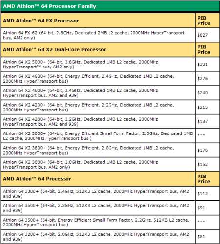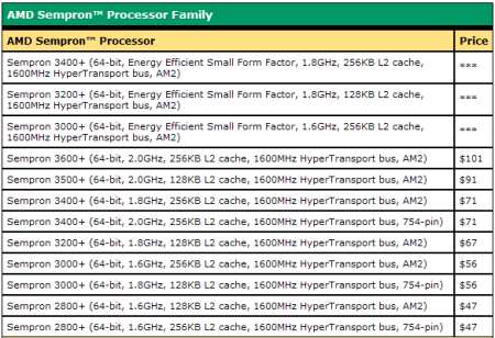 В частности, семейства процессоров теперь выстраиваются вертикально, одно под другим. Примечательно, что для настольных процессоров в прайс-листе теперь предусмотрены подробные комментарии, описывающие их технические характеристики. Из этих комментариев можно узнать, поддерживает ли процессор 64-битные расширения, к какому классу энергопотребления относится, на какой частоте работает, каков объём кэша второго уровня, на какой частоте работает шина HyperTransport, в каких конструктивных исполнениях существует процессор.