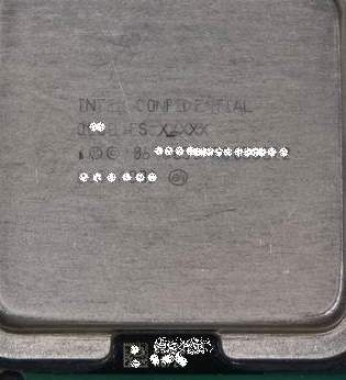 Владелец не захотел навлекать на себя слишком много гнева Intel, а потому предусмотрительно замазал на фотографии некоторые опознавательные знаки процессора. На следующих фотографиях мы сравнили "брюшко" Conroe-L (на фото слева) с "брюшком" чистокровных процессоров Allendale с двумя ядрами и 2 Мб кэша второго уровня (на фото справа).