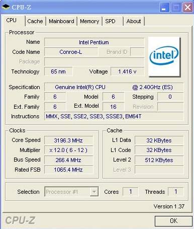 На других страницах указанной ветки форума вы можете найти другие скриншоты с результатами тестов, но выводы о качествах процессоров Celeron 4xx делать рано. Прежде всего, потому что они выйдут только в третьем квартале 2007 года. Кроме того, они будут обладать несколько другими характеристиками. Уверен, что и разгон не будет ограничиваться отметкой 3.2 ГГц. Помощником в разгоне таких процессоров станет их относительно высокий номинальный множитель.