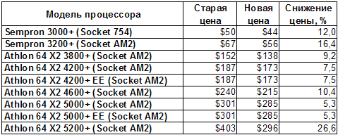 Процессор Sempron 3200+ в исполнении Socket AM2 ещё раз подешевеет 22 января - до $51. По какой-то причине для Sempron 3000+ в исполнении Socket 754 коллеги указывают неточную цену ($50), хотя в официальном прайс-листе указана другая сумма - $56. Возможно, на этот процессор уже действует специальная скидка.