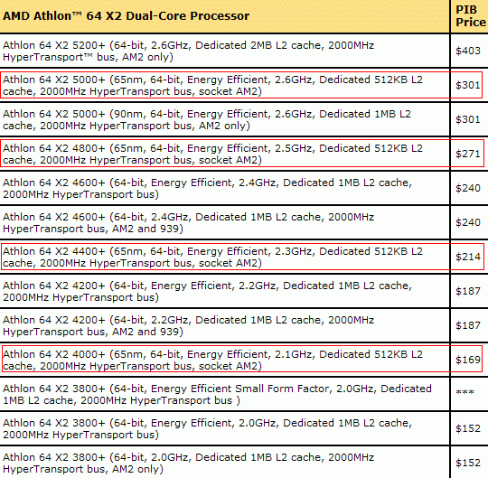 - Athlon 64 X2 4000+ (2.1 ГГц) -> $169.