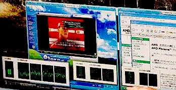 На скриншоте можно видеть работу всех четырёх ядер процессора Phenom FX.