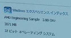 Windows Vista Ultimate принимает этот процессор за инженерный образец, работающий на частоте 3.0 ГГц. Материнская плата на базе чипсета RD790 приютила 3 Гб оперативной памяти, пару видеокарт Radeon HD 2900 XT, и смогла набрать оценку 5.9 в рейтинге производительности по версии операционной системы.
