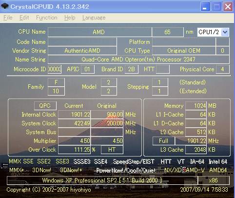 Убедиться в том, что имеющиеся демонстрационные системы основаны на процессорах степпинга B1, мы смогли после изучения материалов на сайтах XtremeSystems.org и AKIBA PC Hotline. Дело в том, что в японских магазинах выставлена система на базе двух четырёхъядерных процессоров Opteron 2347 (1.9 ГГц), и одному из участников указанного выше форума удалось снять скриншот излюбленной японцами утилиты CrystalCPUID.