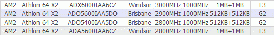 Можно заметить, что Athlon 64 X2 5600+ (2.9 ГГц) имеет две энергетических версии: с уровнем TDP не более 89 Вт (ADA5600IAA5DO) и с уровнем TDP не более 65 Вт (ADO5600IAA5DO).