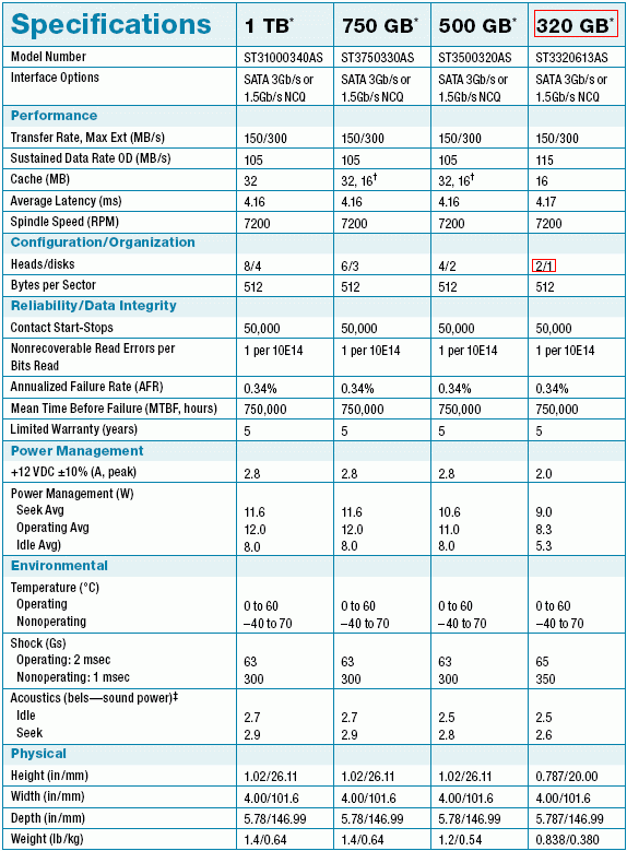 Как выясняется, для компании Seagate март тоже не прошёл даром, ведь она тоже начала производить жёсткие диски форм-фактора 3.5" на базе пластин ёмкостью 320 Гб. Если быть точнее, в ассортименте продукции компании появилась модель серии Barracuda 7200.11 с маркировкой ST3320613AS, оснащённая 16 Мб кэша, и основанная на единственной пластине объёмом 320 Гб.