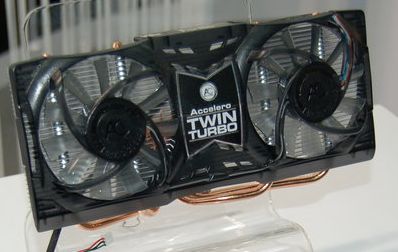 Например, стать преемником кулеров для видеокарт серии Accelero S вполне может система охлаждения Accelero Twin Turbo, которая использует четыре тепловых трубки и два вентилятора, перекрывающих всю поверхность радиатора.