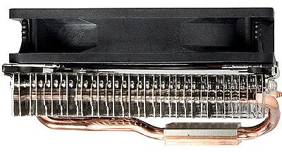 На алюминиевом радиаторе крепятся два вентилятора типоразмера 120 мм, вращающиеся со скоростью от 800 до 1300 об/мин и прокачивающие до 58,3 кубических фута воздуха за минуту. Уровень шума не превышает 16 дБА, питание подаётся по четырёхштырьковому разъёму.