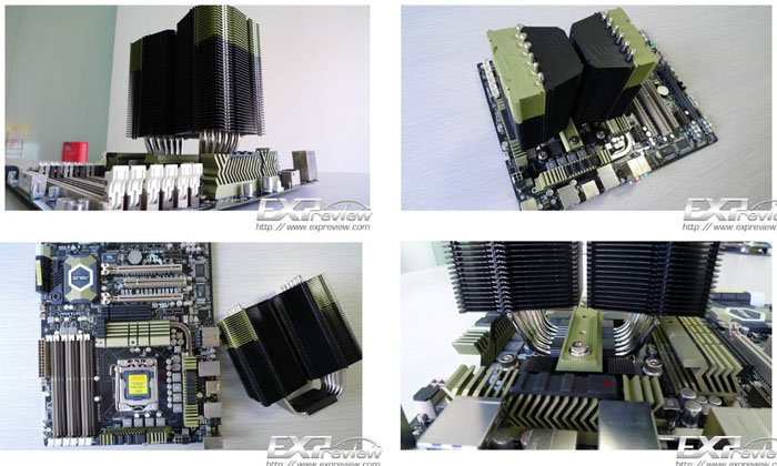 Второй моделью стал кулер Megahalems Camouflage. Изделие предназначено исключительно для процессоров Intel и, в отличие от описанного выше решения, имеет более привычное расположение радиаторов и "дружит" только со 120 мм вентиляторами. Характеристики Megahalems представлены в таблице: