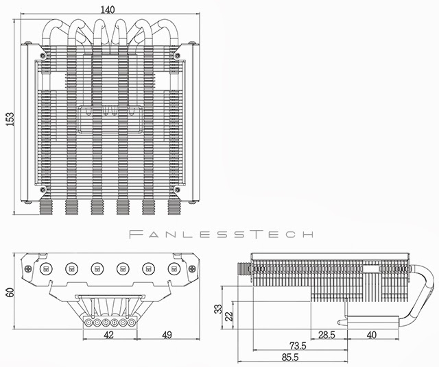 Кулер сохранит компоновку типа "Top Flow" и шесть тепловых трубок, но окажется немного крупнее предшественника: габариты изменятся с 121.1 х 105.47 х 58.15 мм на 153 х 140 х 60 мм, масса также увеличится до 475 граммов. В пассивом режиме AXP-200 сможет удержать на приемлемом уровне температуру процессора с типовым тепловыделением до 35 ватт.