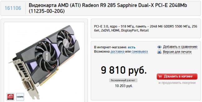 Цены начинаются с отметки 9810 рублей за видеокарту в исполнении Sapphire, вариант производства Gigabyte с фирменной системой охлаждения WindForce последнего поколения можно приобрести за 10 240 рублей. Жить определённо становится веселей, поскольку новые видеокарты появляются в продаже, а с выходом на рынок GeForce GTX 980 и GeForce GTX 970 их станет ещё больше.