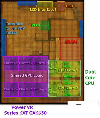 Ключевой особенностью A8, как пишет DailyTech, стала 6-кластерная графика PowerVR от Imagination Technologies Group Plc, тогда как в предыдущей версии применялась 4-кластерная конфигурация GPU. Это, если верить Apple, обеспечило 50-процентный прирост в графике по сравнению с чипом A7.