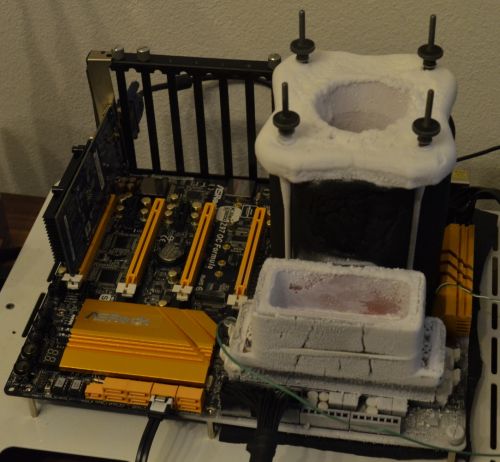 Жидким азотом охлаждалась и оперативная память, которая в данном случае была разогнана до режима DDR3-2904 при значении задержек 9-12-12-16 (1T). Основой для системы, обеспечившей лучший результат для четырёхъядерного процессора в Cinebench R15, стала материнская плата ASRock Z97 OC Formula.