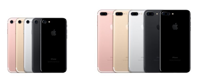 iPhone 7 и iPhone 7 Plus облачены в металлические корпуса с защитой от попадания влаги по стандарту IP67. Они представлены в пяти расцветках: золотой, серебристой, чёрной, "розовое золото" и "чёрный оникс". На выбор покупателям будут представлены три версии с разным объёмом встроенной памяти: 32, 128 и 256 ГБ.