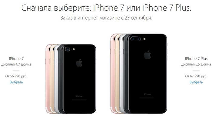 Заказать iPhone 7 и iPhone 7 Plus в России в фирменном интернет-магазине Apple Store можно будет с 23 сентября. Нам уже известны их официальные розничные цены для российского рынка. Они представлены ниже (в скобках для сравнения указана стоимость новых iPhone в США):