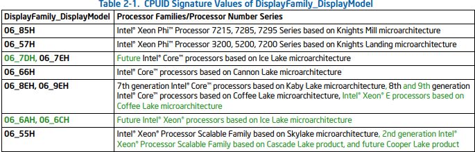 Как отмечают опытные процессорные детективы, в новой редакции документов Intel для разработчиков уже упоминаются идентификационные данные не только процессоров Cascade Lake, которые были представлены в апреле, но и будущих 14-нм процессоров Cooper Lake и 10-нм процессоров Ice Lake. Подчеркнём, что речь идёт о моделях процессоров для серверного рынка.