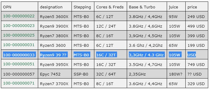 Складывая мозаику из маркировок процессоров AMD с архитектурой Zen 2, различные «процессорные детективы» неизбежно находят в ней «пробелы», которые со временем могут быть заполнены новыми моделями. Ресурс Planet3DNow.de, например, начал заполнять таблицу с маркировками и ценами процессоров Ryzen серии 3000.