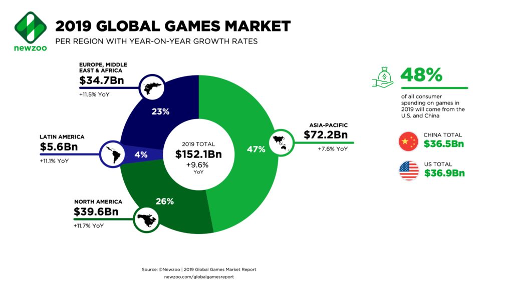 Китай и США обеспечивают до 48% всей выручки от реализации игр. В дальнейшем, как считают авторы аналитической записки, вряд ли что-то сможет помещать Китаю оставаться самым крупным игровым рынком. Возрождается интерес к играм и на японском рынке, но здесь локомотивом роста выступают ностальгические настроения.